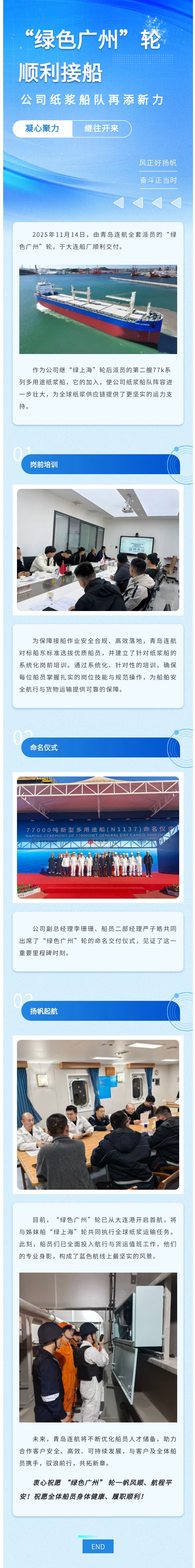 “绿色广州”轮顺利接船,公司纸浆船队再添新力
